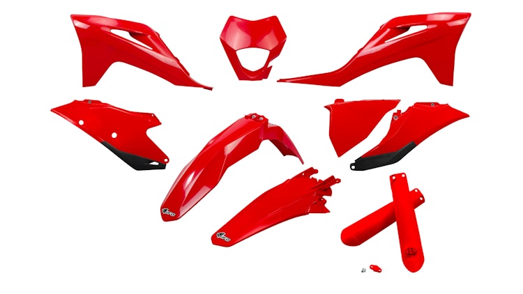 UFO Plast Verkleidungssatz für GasGas in Rot – OEM-Qualität aus robustem Polypropylen für Enduro und Motocross. Perfekte Passform und langlebiger Schutz.