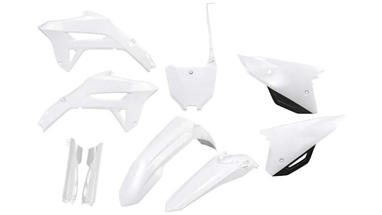 UFO Plast Verkleidungssatz für Honda, weiß. Hochwertiges Polypropylen, robust und langlebig. Perfekt für Enduro und Motocross.