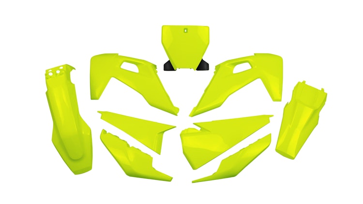 UFO Plast Verkleidungssatz für Husqvarna in Gelb. Robuster Kunststoff-Satz für Enduro und Motocross mit strapazierfähigem Polypropylen-Material.