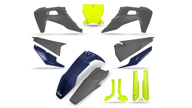 UFO Plast Verkleidungssatz für Husqvarna Limited. Hochwertiges Polypropylen, gelb/schwarz/weiß. Kompletter Schutz für Enduro und Motocross.
