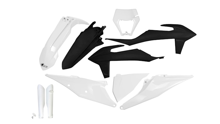 UFO Plast Verkleidungssatz für KTM Six Days 2020 Edition in schwarz-weiß. Hochwertiger Kunststoff, robuste Verarbeitung, perfekte Passform und langlebige Performance.