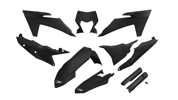 Material: Polypropylen (PP) | Farbe: Schwarz | Originalnummer: KTKIT530F-001 | EAN: 8052135184614 | Verpackungseinheit: 1 Satz | Kompatibilität: KTM-Modelle