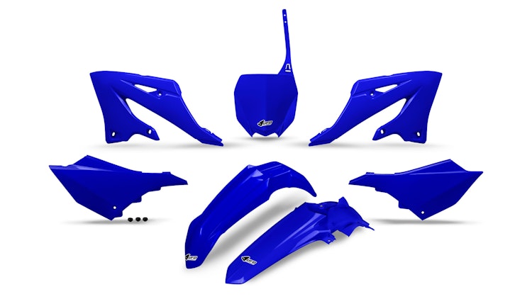 1 × UFO Plast Verkleidungssatz Yamaha OEM Blau (bestehend aus: Startnummerntafel, Kühlerabdeckung, Seitenverkleidung, Kotflügel vorne, Kotflügel hinten)